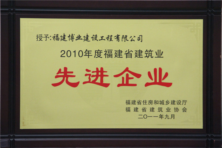 2010年度福建省建筑业先进企业